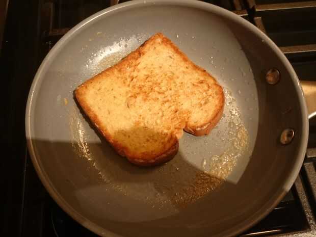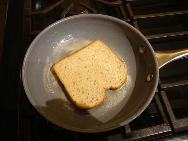 experimento un poco de aburrimiento, estaba considerando hacer un huevo frito de mi sandwich y el pan parecía tan aburrido...Curiosamente este experimento fue un éxito inmediato y realmente más fácil que usar la bandeja por el entusiasmo de la encime