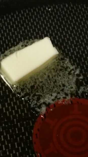 Comience por cortar una rebanada fina de mantequilla y ponerla sobre la bandeja. Ahora gire la bandeja de 6 o 7.