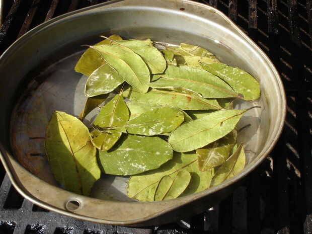 Coloque una cacerola de agua con unas hojas de pimiento morrón más directamente sobre el calor. Esto agregará un sabroso vapor para cocinar y mantener la carne húmeda, además, la humedad adicional ayuda a regular a la temperatura de la parrilla.  Trate de evitar el pan reseque durante la cocción.