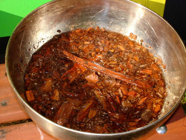 Remojar los pedazos de madera de pimiento morrón en agua durante al menos 20 minutos.