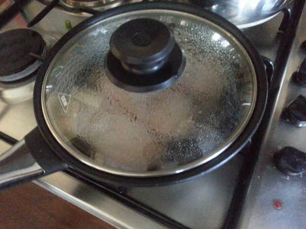 Con un cuchillo corte Xs a cada lado de la carne. Gire el calor a fuego bajo y cierre la tapa de la olla para dejar el interior de la cocción de la carne.