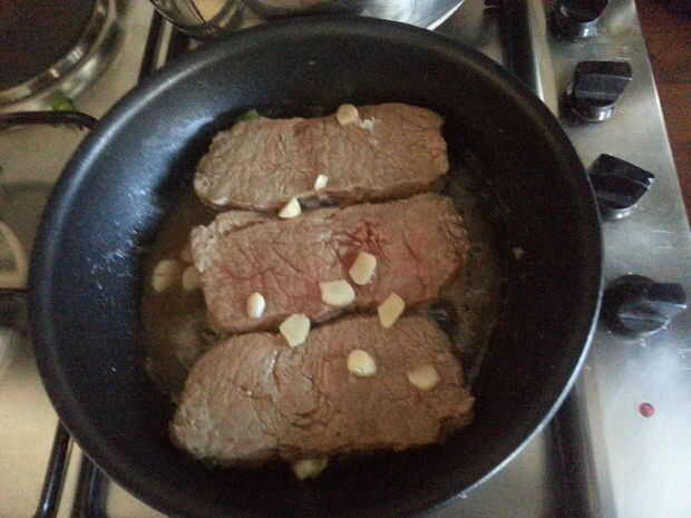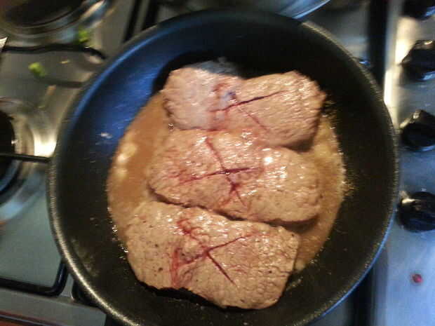 -puede comprobar mirando a través de los cortes no sería demasiado rojo pero un poco Rosa está muy bien. No a cocine demasiado su carne se arruinará todo el sabor.