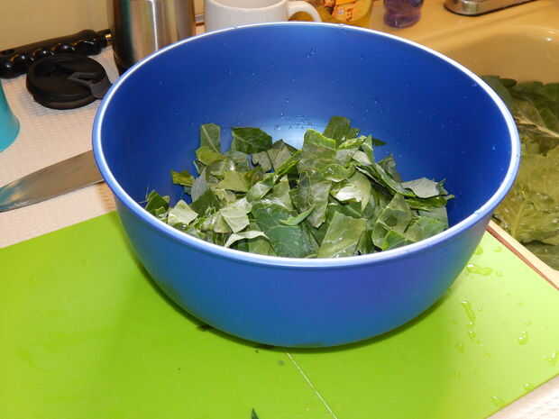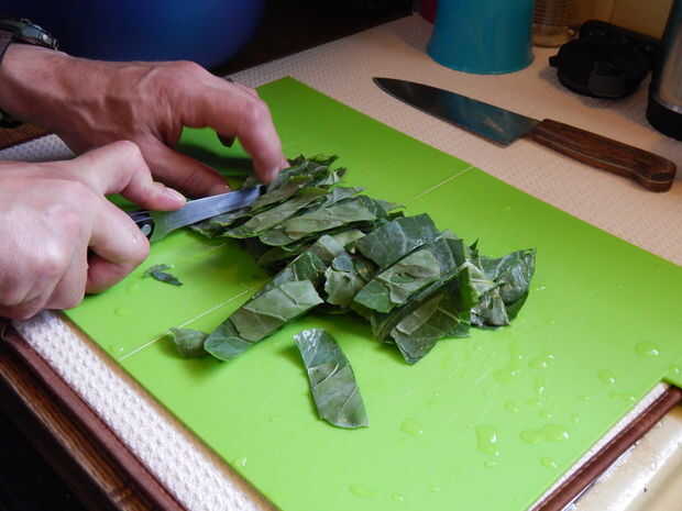 4. Corte las pilas en tiras y luego tienes listo para ser cocido de berza.
