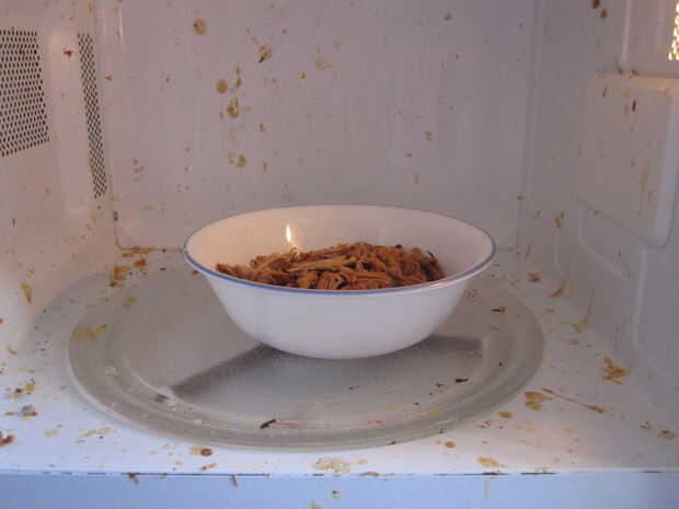 Microondas el recipiente con la carne de cerdo para 30-40 segundos