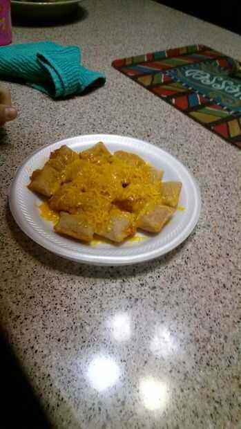 He puse queso en mis rollos de pizza debido a insuficiente queso dentro de los rollos. Luego les pongo en el microondas durante unos 15 segundos.