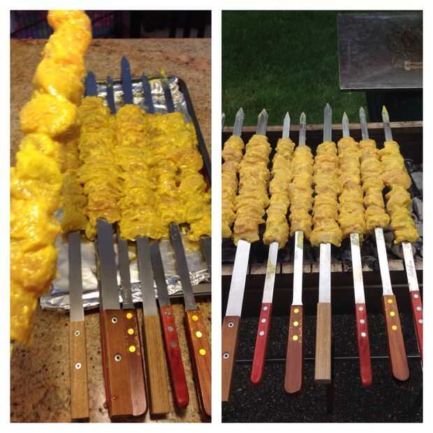 2. Coloque cada brocheta sobre la parrilla y cocinar hasta que el pollo esté bien hecho