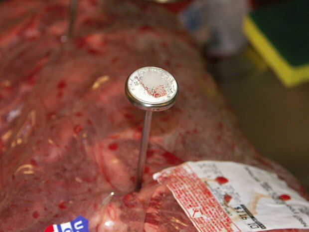 - Termómetro para carnes. Hay dos variedades comunes de carne. Uno está diseñado para sentarse en su asado en el horno mientras cocina. La otra es una "lectura instantánea", que se supone que del palillo para comprobar la temperatura, pero no deje en el horno... El primero es preferido, para que pueda mantener un continuo ojo cómo la cocción es el procedimiento.
