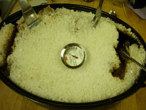 400F cristales de sal no son algo que quiere soltar en tus zapatillas! Que la bestia se siente durante 10 o 15 minutos para que te enfríe un poco. Continuará cocinándose un poco durante este tiempo... Recoger su excavación, levantamiento e implementos de talla.