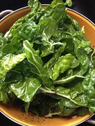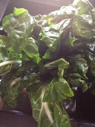 1. He comprado estas acelgas de Hy-Vee, asegúrese de que la verdura es fresca, esto puede mejorar el sabor del plato entero.