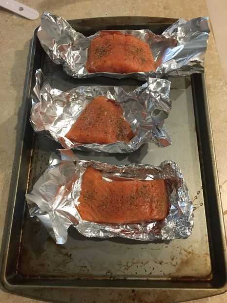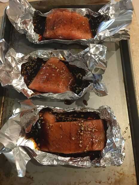 -Doble los paquetes por lo que se cubre el salmón y coloque en el refrigerador durante 30 minutos. Esto se deje marinar el salmón para que sean más sabrosos una vez cocidos.