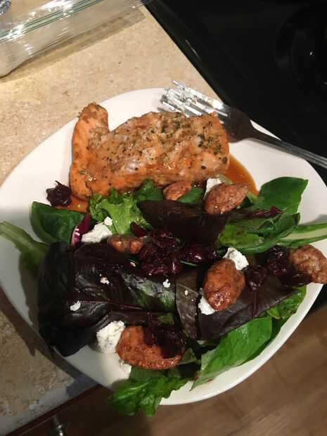 Al servir, este pares del plato con verduras como espárragos, coles de Bruselas, o primavera mezcla. También va bien con una buena copa de vino, como el Pinot Noir. Ahora que la cocina es completa, se puede comer! Gracias por leer mi receta, espero que lo disfruten.
