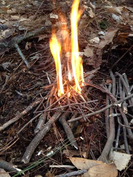 Comenzar un fuego y Agregue combustible para cocinar el conejo encima.