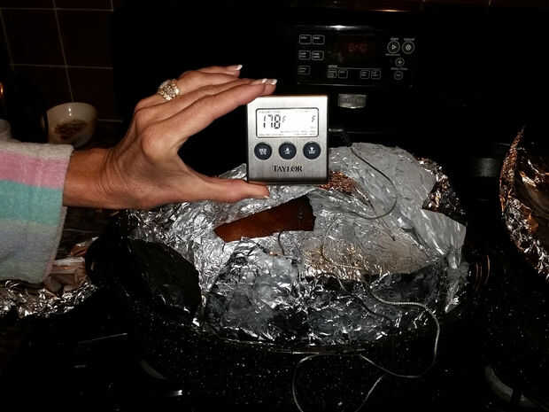 Si no es 140F, vuelva a sellar el papel de aluminio y cocinar más (y dejar de abrir la puerta del horno! Sé lo que hicisteis).