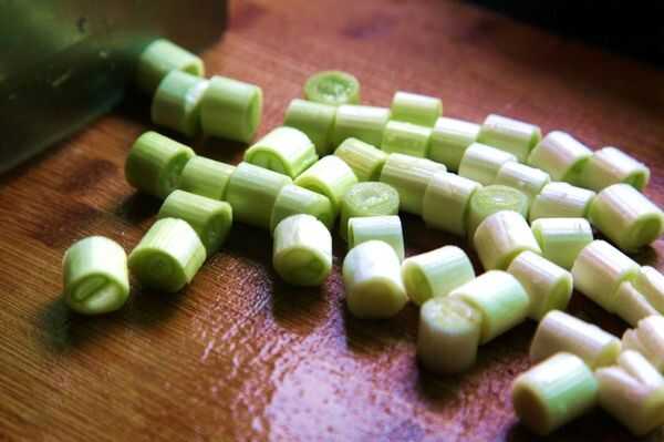 • Trocear la cebolla verde.