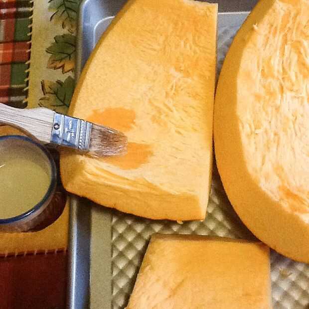 Mientras que bebiendo su bebida de elección y contando historias divertidas sobre Jack, precalentar el horno a 375 * F (190 * C). Coloque las rodajas de calabaza en una bandeja de horno y cepillo con un poco de aceite. Usted puede temporada la calabaza en este punto si te gusta. No sé lo que voy a utilizar minas para aún así que salí llano.