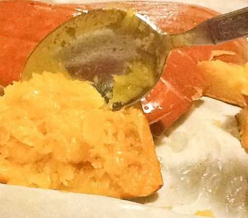 Cuando se hace la calabaza, permita que se enfríe un poco y simplemente sacar de la piel con una cuchara.