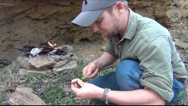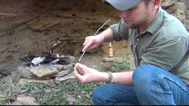 Nota: Asegúrese de utilizar una rama verde/vivir para cocinar tu grub. Utilizando madera muerta para un asador, probablemente, resulte en llamas, ardiendo en la mitad y la pérdida inevitable de su comida.