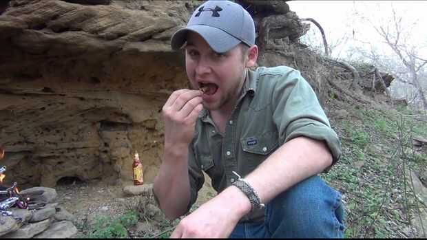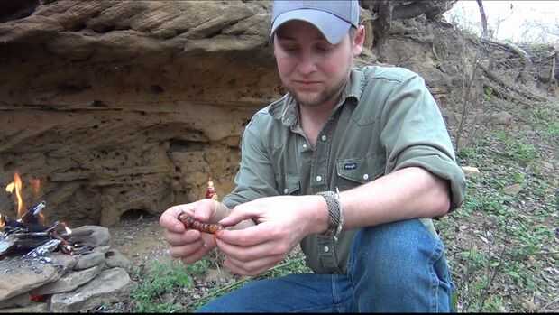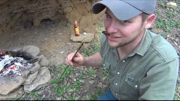 Sacar el grub o comer en el palo! Es más que un bocado, y me quito el cabeza/pico (muy duro) antes de consumir. Disfrutar de la comida sabor ahumada, era realmente bastante sabroso cuando logré olvidar lo que es un poco... Tardará un rato en terminar, mientras que la masticación le probablemente querrá tomar unos momentos para considerar las decisiones que haya hecho en la vida que han llevado a este momento. Al menos no vivo en una camioneta hacia abajo por el río que supongo...