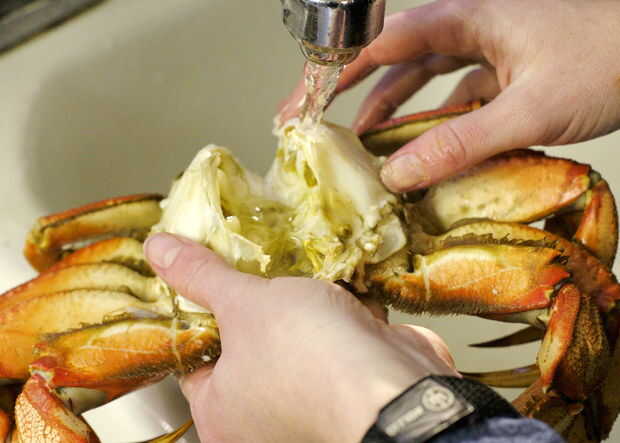 Enjuague todo el goo verdoso-marrón fuera del cuerpo; la izquierda sólo debe ser cáscara y carne sabrosa.