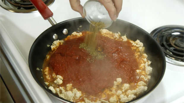 Agregar 1 lata de 28 onzas de tomates triturados.