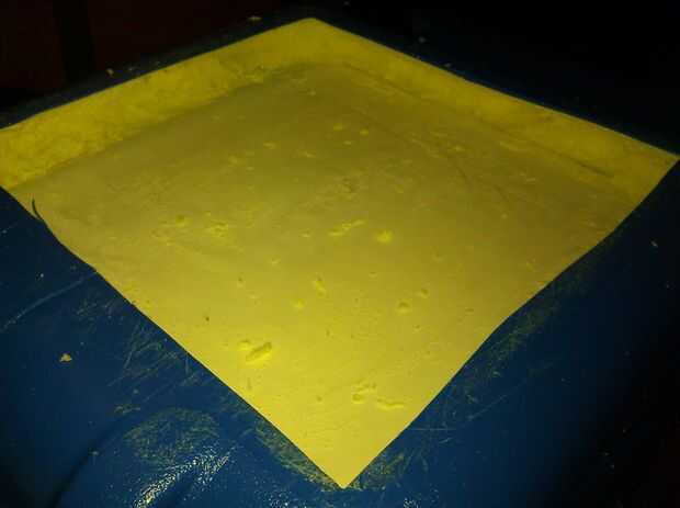 Usando un cuchillo de hoja ancha, pedazo de metal con un fondo plano... o algo como espátula, empezar a tomar trozos de la espuma de la parte inferior de la nevera. Tenga cuidado cuánto gusto pones esta-eventualmente golpeas el interior forro del enfriador. Si se rompe el interior forro vas a tener un mal momento.