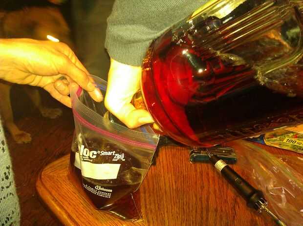 Si su fuente se dividen en cuartos y uno de la fuga de cuartos, entonces es todavía en la bolsa de galón. También hace más fácil cambiar el licor para conseguir el mejor ajuste.