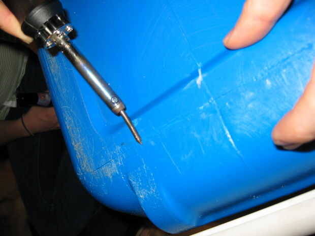 Tome su cautín en bajo (o calentar repetidamente un clavo grande sobre una estufa o algo) y derretir el plástico alrededor de donde usted recortar juntos. Esto va a ser un sello bastante superficial, pero si todavía trabajo.