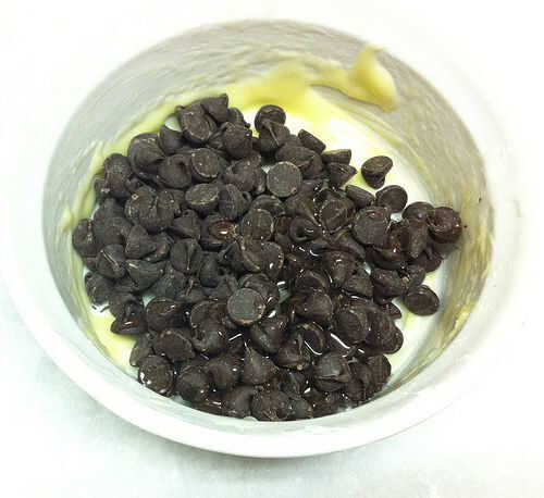 Foto 2. Chocolate semidulce y el jarabe de maíz en el vaso sin lavar que había usado para hacer el barro chocolate blanco; sí, soy sucio como eso.