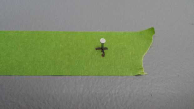 Una vez ambos clavos en su lugar, despegue la cinta de la pared. ¿Ver? ¿Ningunas marcas innecesarias? Sin agujeros "extras".