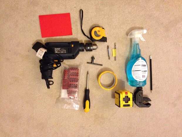 • Un nivel de burbuja (utilicé mi nivel de láser Stanley Cubix - un poco lo del kit. Altamente recomendado)