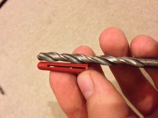 Estaba perforando de ladrillo por lo que utiliza una broca de albañilería y enchufe de pared diseñado para paredes de ladrillo. Un buen truco para medir la profundidad del agujero es poner alguna cinta de enmascarar en la broca en la misma longitud que el cable de corriente. Otro pequeño truco es pegar una Post se nota o un pedazo de papel debajo del orificio que va a perforar. Esto recoge todo el polvo. Alternativamente, siempre puede utilizar un aspirador.