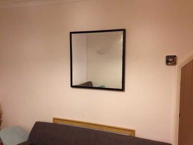 El paso final en este proceso es darle el espejo una buena limpia. Lo más probable es que has puesto una carga de huellas sucias por todas partes. Una vez limpio, todo lo que necesitas para es colgar. Si has hecho todo bien el espejo debe adaptarse y estar perfectamente nivelado.