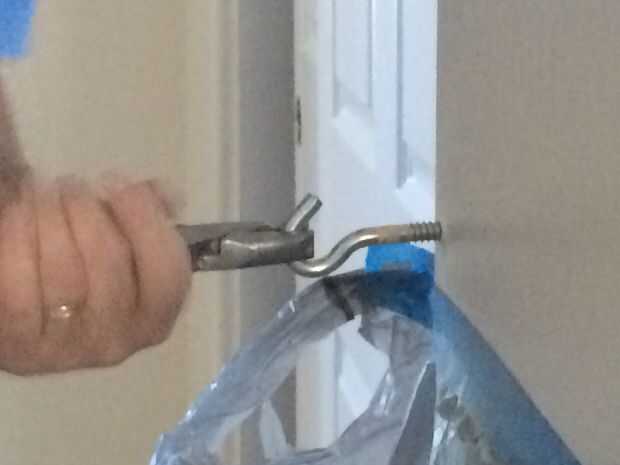 Tomar su gancho de lag y empezar a atornillar en la pared. Asegúrese de que entra el perno y no lo hueco de la pared. Medida que se avanza más utilizar los alicates para darle más peso al atornillar en.