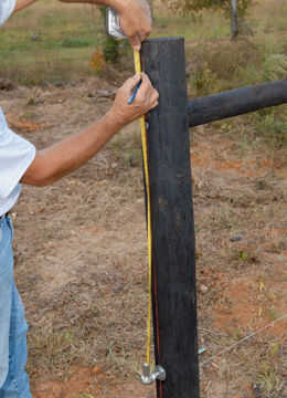 Para localizar la posición de la bisagra superior, mida la distancia desde la parte inferior de la bisagra inferior a la parte superior de la bisagra superior. Recuerde que el perno de la bisagra superior es hacia abajo. Esto evita que el ganado o caballos levantando la puerta de sus bisagras y retarda también los ladrones de quitar la puerta. Deslice los pernos de la bisagra a través de cada post. Aflojar la bisagra superior en la puerta y deslice hacia abajo. Coloque la puerta en el perno de bisagra inferior. Posición de la bisagra de puerta superior, inmediatamente debajo del perno de la bisagra superior. Deslice la bisagra de la puerta en su lugar y apriete.