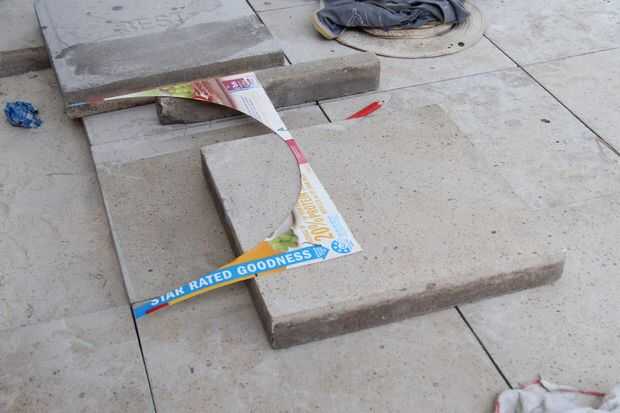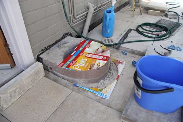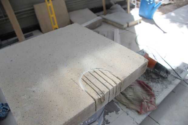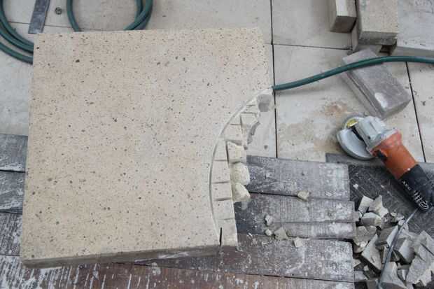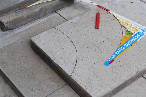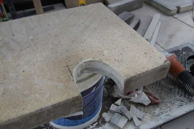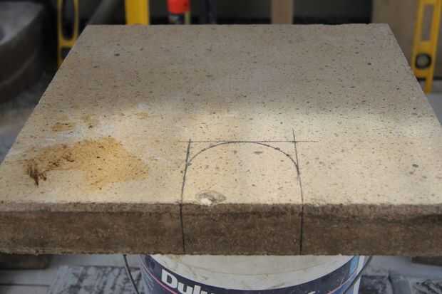 Después de eso tuve que hacer un corte curvo en el desagüe antiguo. Para cortar la forma requerida trazó una línea sobre un pedazo de cartón. Luego cortar la forma y había transferida a una pavimentadora. Llevó algún tiempo alineando la plantilla porque atravesó a 3 pavimentadoras pero todos mis recortes iniciales fueron un poco tímidos así que podría arrastrarse hasta la línea después de prueba de acoplamiento