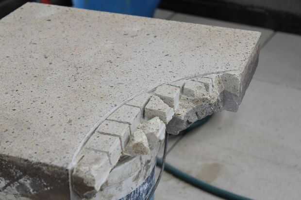 El truco para cortar una curva con un disco circular es el disco alrededor de la curva del ángulo. El problema con este método es no te la hoja muy profundamente en el corte, pero como usted anota la capa superior la arena cubrirá cualquier imperfección que.