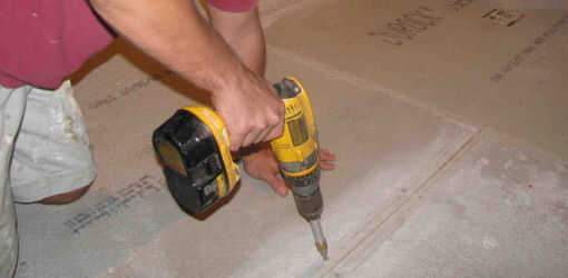 Pone la Junta resistente en el piso, luego fijarla al suelo mediante los tornillos de tablero resistente y el taladro eléctrico.