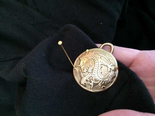 Medida que empuja el headpin a través de la tela, asegúrese de que la tela es recta y firmemente contra la parte posterior de la hebilla, para evitar resbalones.