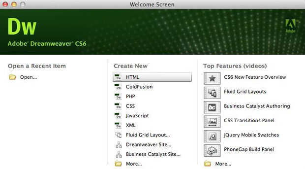 Abra un nuevo documento de Dreamweaver y seleccione la opción "HTML".