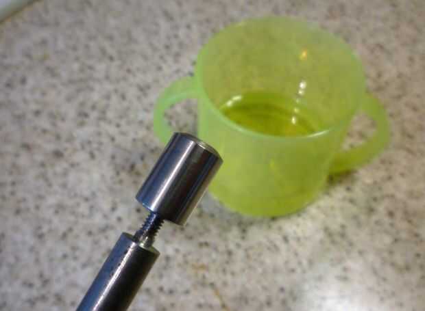 En mi caso perforado/roscado de la pieza de metal y un soporte con un extremo roscado. Esto no es necesario como puede mantener adecuadamente el artículo y no cubre donde deba ser calentado.