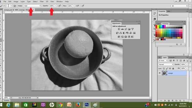 Asegúrese de que modo está ajustado en "Color" y opacidad se establece en 100%.