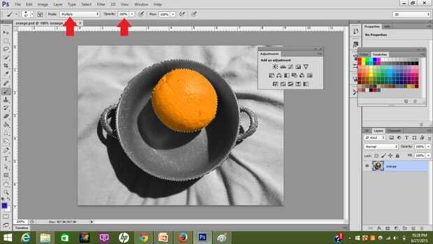 Seleccione la herramienta Pincel, pero esta vez cambie el modo a "Multiplicar" y mantener la opacidad al 100%.