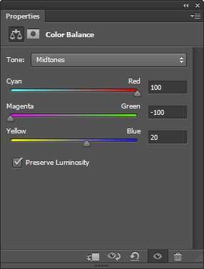 Paso 9: Haga clic en de Color / Balance en el panel "Ajustes" y parámetros establecidos.