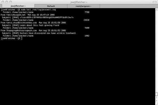 Normalmente de cola /var/log/procmail y compruebe si cualquier spam no se ha marcado incorrectamente.