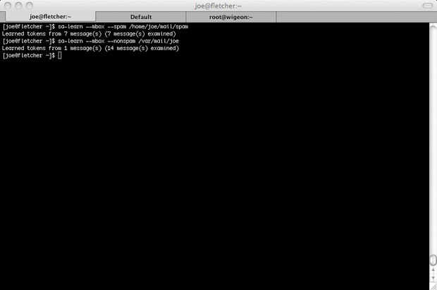 Joe ~ $ sa-aprender--mbox - spam /home/joe/mail/spam