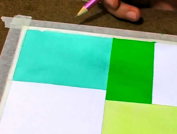 Intento a funcionar hacia fuera el color. Deje que el color estará húmedo y luego sujete la junta recta. Bien, si miramos cuidadosamente, usted verá que nuestro color se seca totalmente y la única diferencia entre la acuarela y el gouache es la cobertura de la superficie de la mesa de trabajo. (Figura 14)