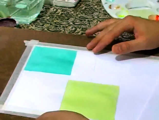 En la superficie de la Aguada, hay una especie de aceite que necesita sacudirlo para combinar y mezclar y luego trabajar con él. Estos utilizamos dos verde y amarillo por Guache que ver colores y diferencias de estos colores la vista y comparar entre sí. Pintura no es diferente pero las principales diferencias entre Aguada y acuarela es la cantidad de densidad y acuosa. (Figura 12)