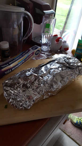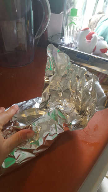 Luego, envolver todo el paquete firmemente en al menos dos capas adicionales de papel de aluminio.