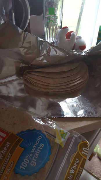 Doble cantidad de tortillas por la mitad y envuelva en papel aluminio. Este paso puede completarse tal como está embalando las cosas para irse a su viaje.