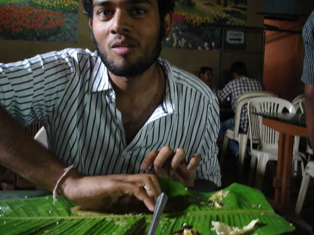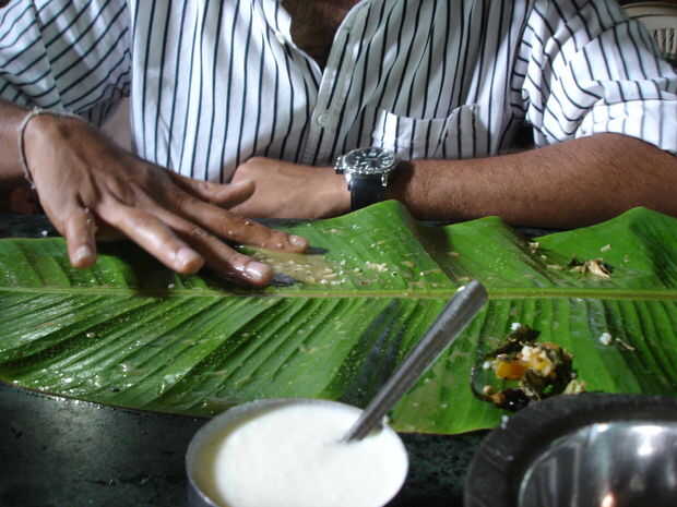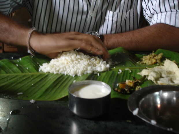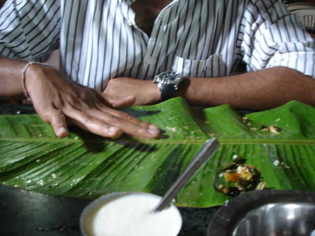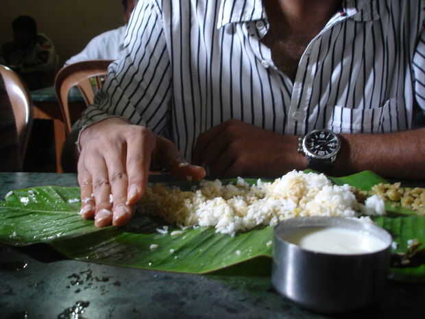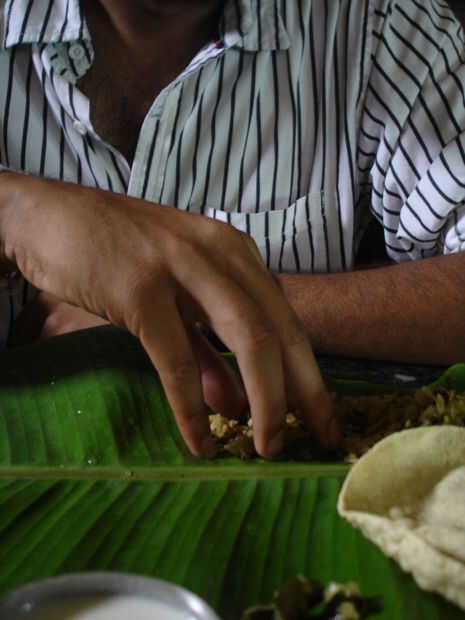 utilizar la mano entera para barrer de la mezcla y lamer de los cuatro dedos.